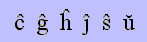 Les lettres accentuées de l'espéranto n'existent pas dans les polices habituelles. (Sauf dans les toutes dernières versions de windows qui sont adaptés à l'unicode sur les ordinateurs très récents.) Solution :
